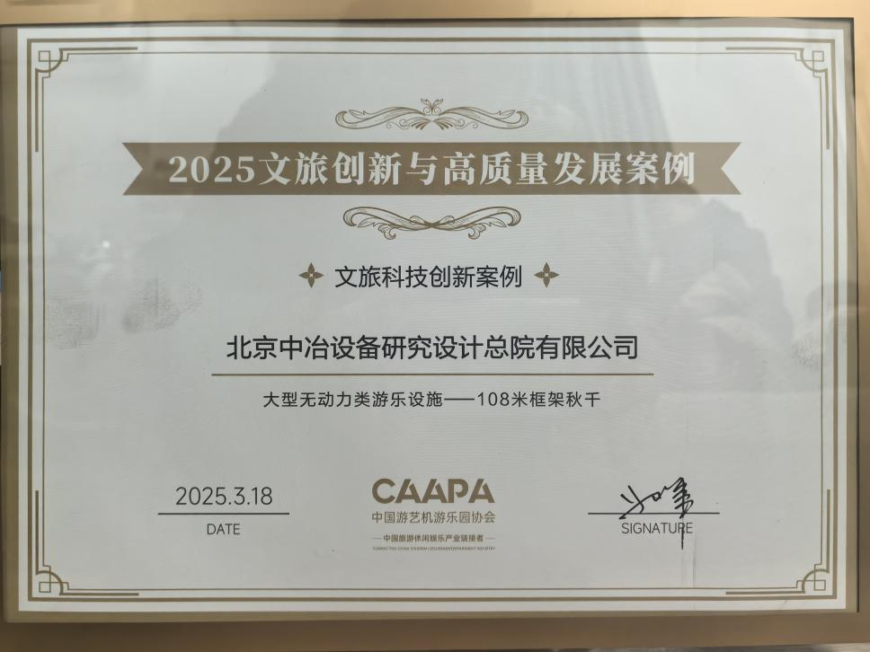 3月18日,中国游艺机游乐园协会发布“文旅创新与高质量发展案例”评选结果,由申博太阳城设备院自主研发的“108米框架秋千(云端彩虹秋千)”凭借突破性技术成果成功入选。